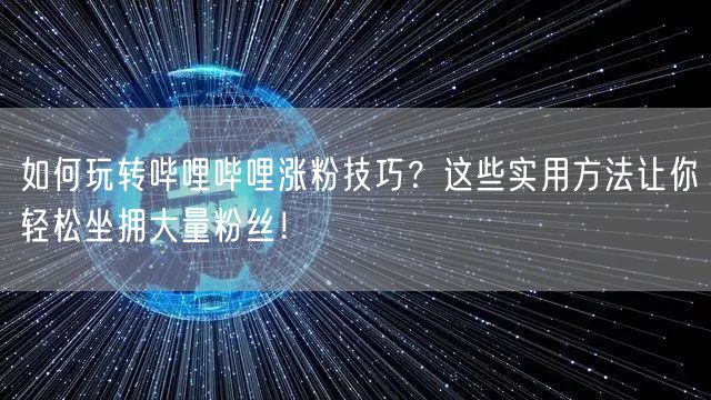 在哔哩哔哩这个充满活力和创意的平台上,拥有大量粉丝是每位用户都希望实现的目标。粉丝数量不仅代表着您的影响力,也是您内容被更多人认可的重要标志。本文将分享一些实用的哔哩哔哩涨粉技巧,助您轻松坐拥大量粉丝!